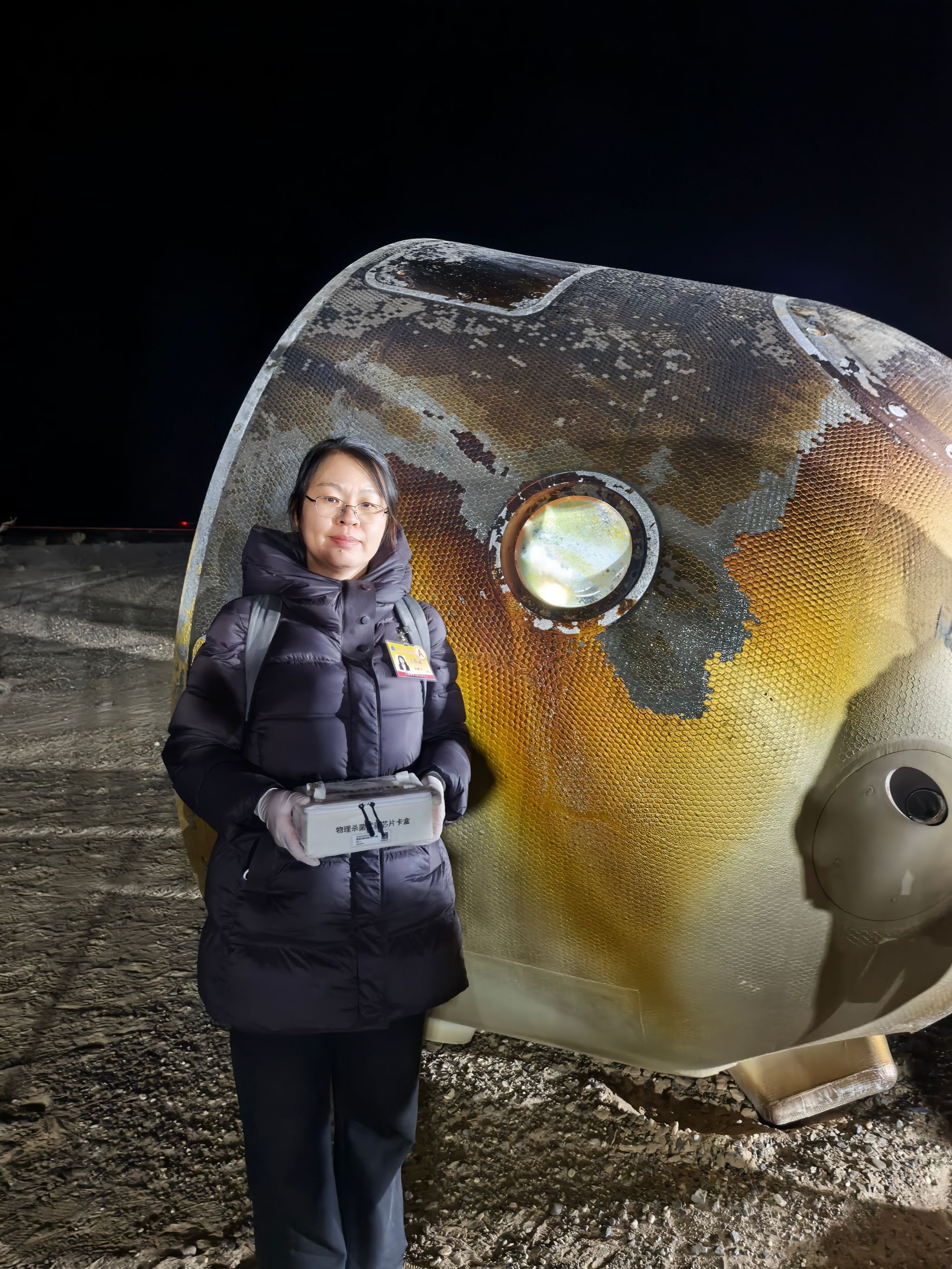 周祚万教授、徐晓玲副教授团队研发的新型杀菌技术试验模块经神舟二十号航天员乘组在轨试验后,随神舟二十一号载人飞船返回舱顺利返回地球,徐晓玲副教授在着陆场现场接收下行样品。