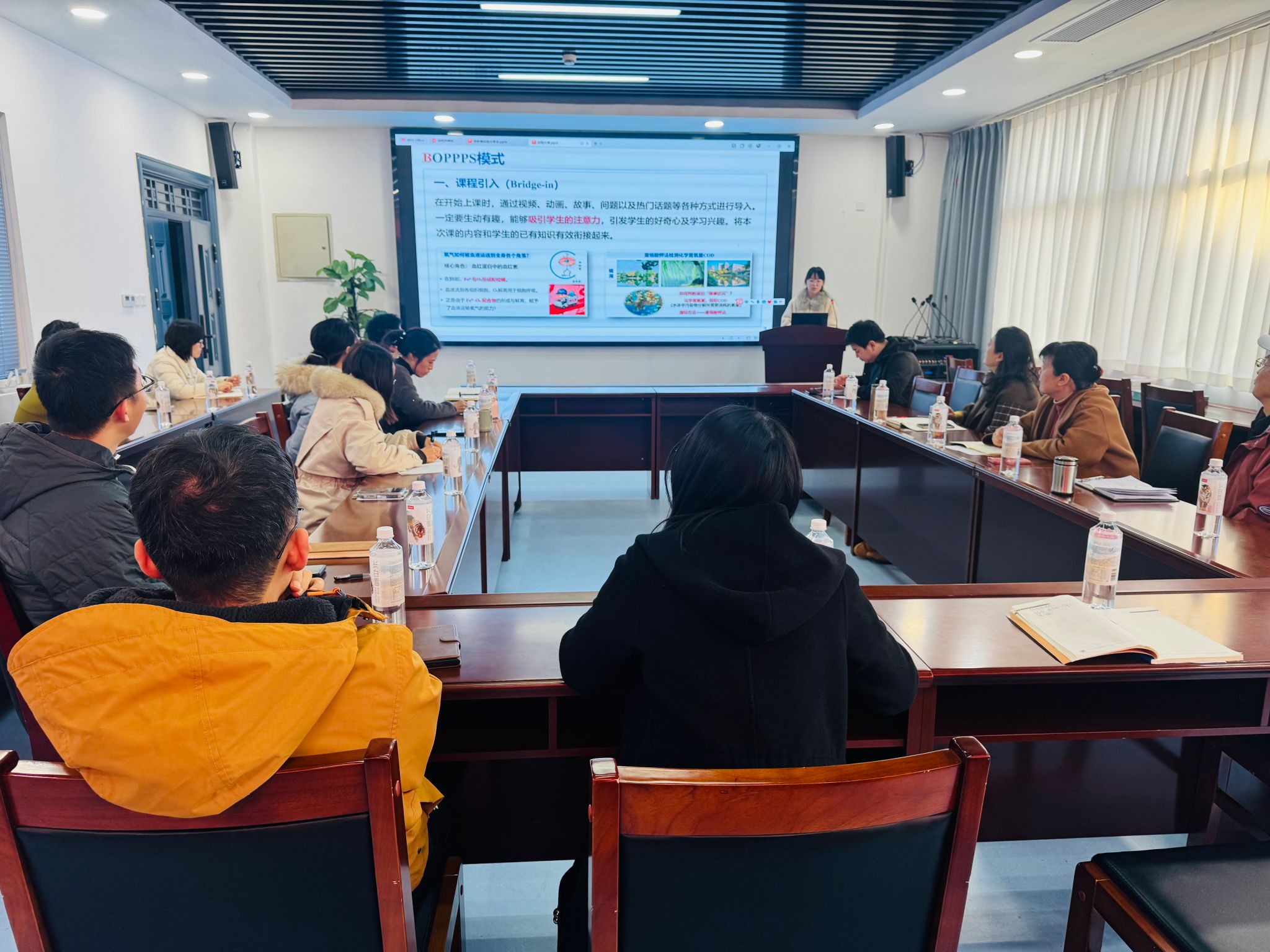苏宇彬老师结合“BOPPPS”教学模式展示了参赛课件与教学设计案例,直观呈现了自己在教学过程中的设计理念、设计步骤和思政结合点,以及如何通过巧妙的课堂提问提升学生参与度。