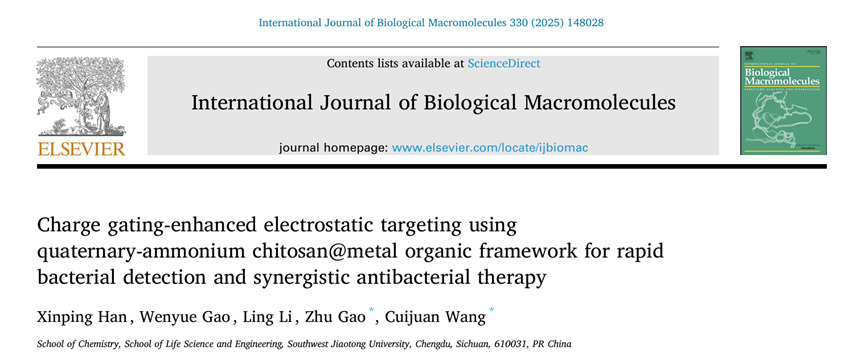 该论文以“Charge gating-enhanced electrostatic targeting using quaternary-ammonium chitosan@metal organic framework for rapid bacterial detection and synergistic antibacterial therapy”为题发表在高水平国际国产成人
