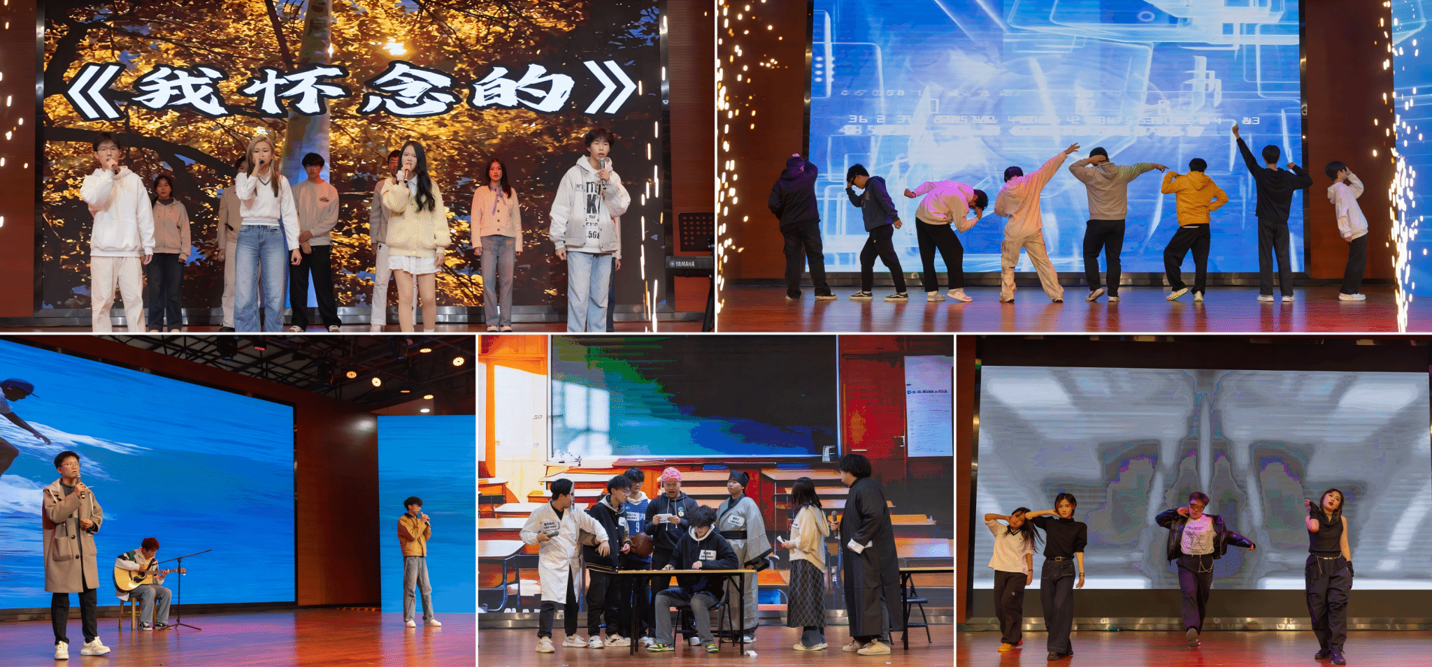 第三篇章:聚变梦想。热血昂扬,勇担使命。2025级高分子1班同学带来合唱《我怀念的》,温情追忆青春里的并肩欢笑与共同成长。蒲和源、陈春旺等同学演绎的小品《当考试还剩15分钟》,以诙谐幽默的方式再现考场趣事,唤起全场学子的强烈共鸣。罗钰钦、沈子萱、杨曾茗和宋狄霏同学带来的舞蹈《Whiplash》动感十足,用利落动作诠释青春的热血与锋芒。易君睿、段晨誉、陈浩然三位同学演唱的《我记得》,以质朴民谣串联起初入校园的忐忑、室友初见的温暖与父母离别的叮咛,让 “记得” 成为藏在心底的柔软底色。最后由熊靖熙、王鑫明等同学带来舞蹈《加减乘除》,尽展生命的肆意张扬,用卡点与配合解构青春的多元定义。一个个精彩节目如同梦想的 “聚变”,在舞台上绽放出最耀眼的光芒!